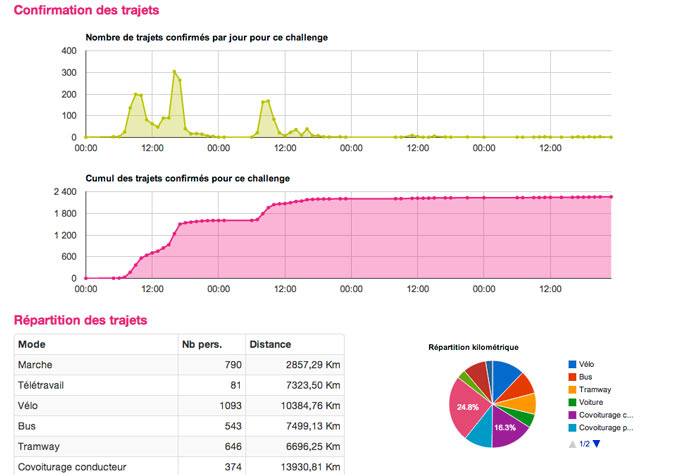 L'application permet aux établissements publics et privés des agglomérations pré-citées de s'inscrire, et d'ainsi permettre à leurs salariés d'effectuer une pré-inscription de leurs trajet qu'ils viendront confirmer après participation au Challenge de la mobilité.