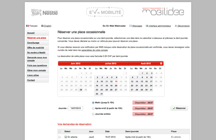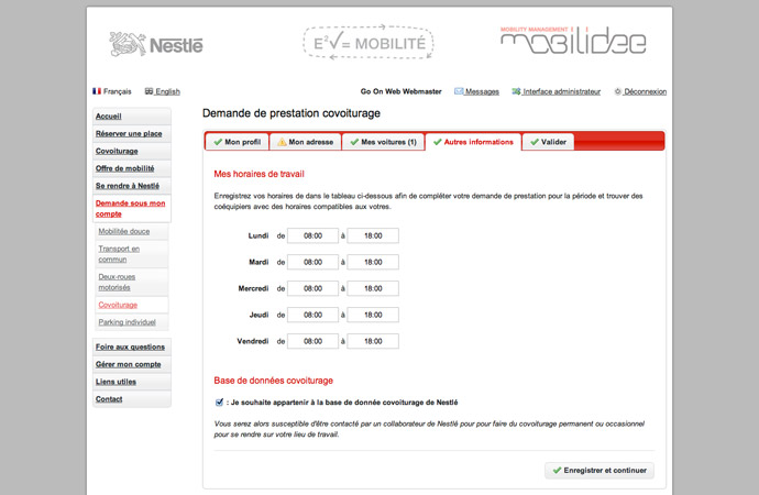 Développement d'un application web permettant aux salariés d'effectuer annuellement une demande de prestation mobilité (déplacements doux, covoiturage, transports en commun, voiture individuelle) et d'attribuer automatiquement, en fonction de certains critères, une prime de mobilité ou mise à disposition d'une place de stationnement.