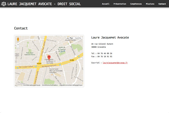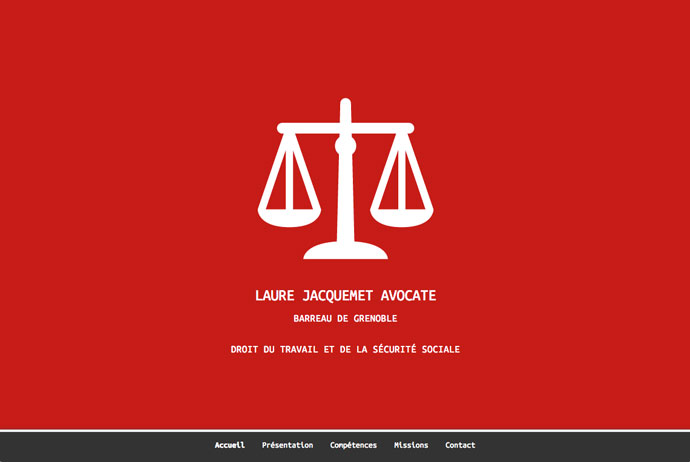 Réalisation et intégration d'un site internet statique "Single Page" pour Laure Jacquemet, avocate en droit du travail et de la sécurité sociale au Barreau de Grenoble.